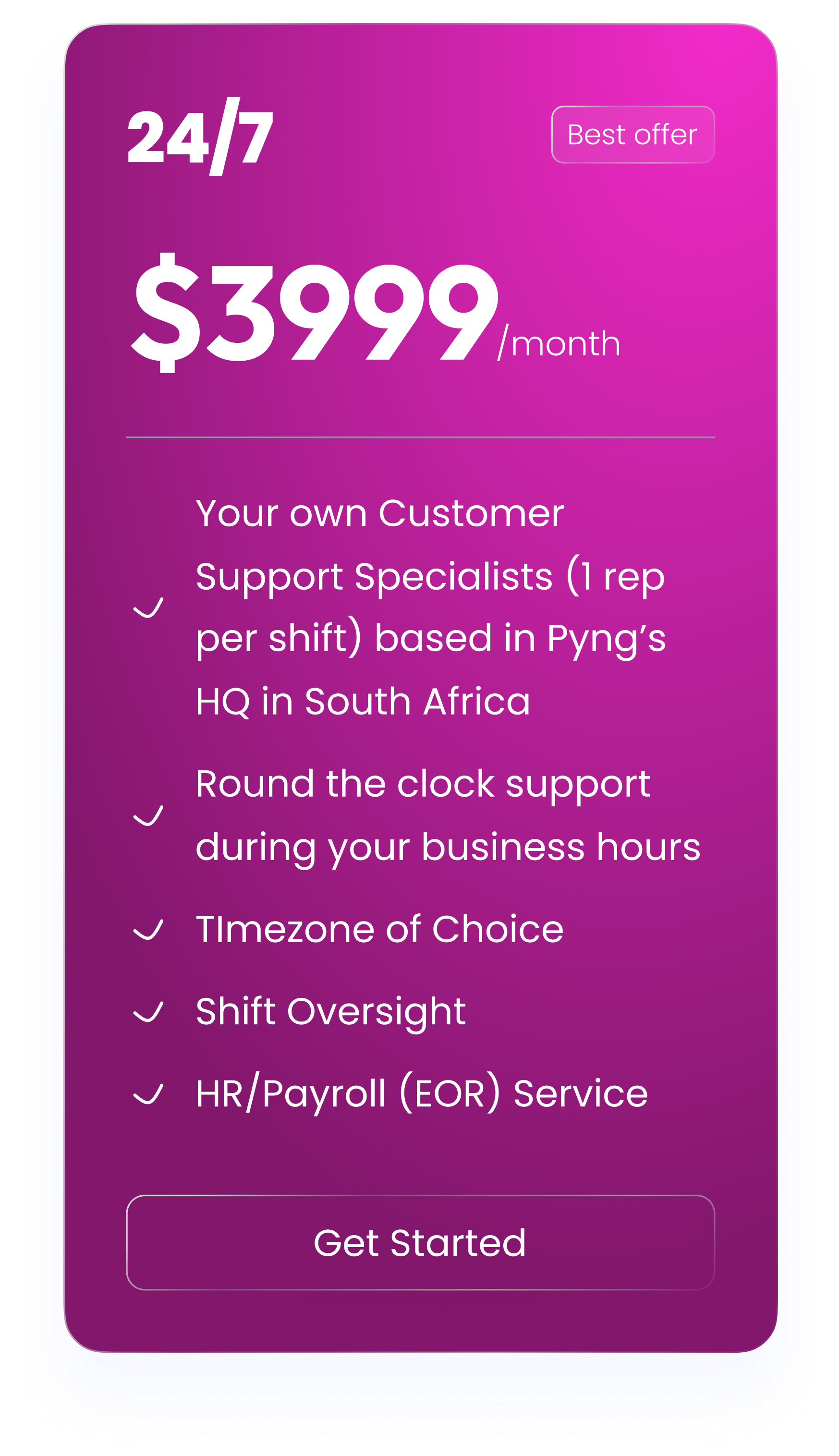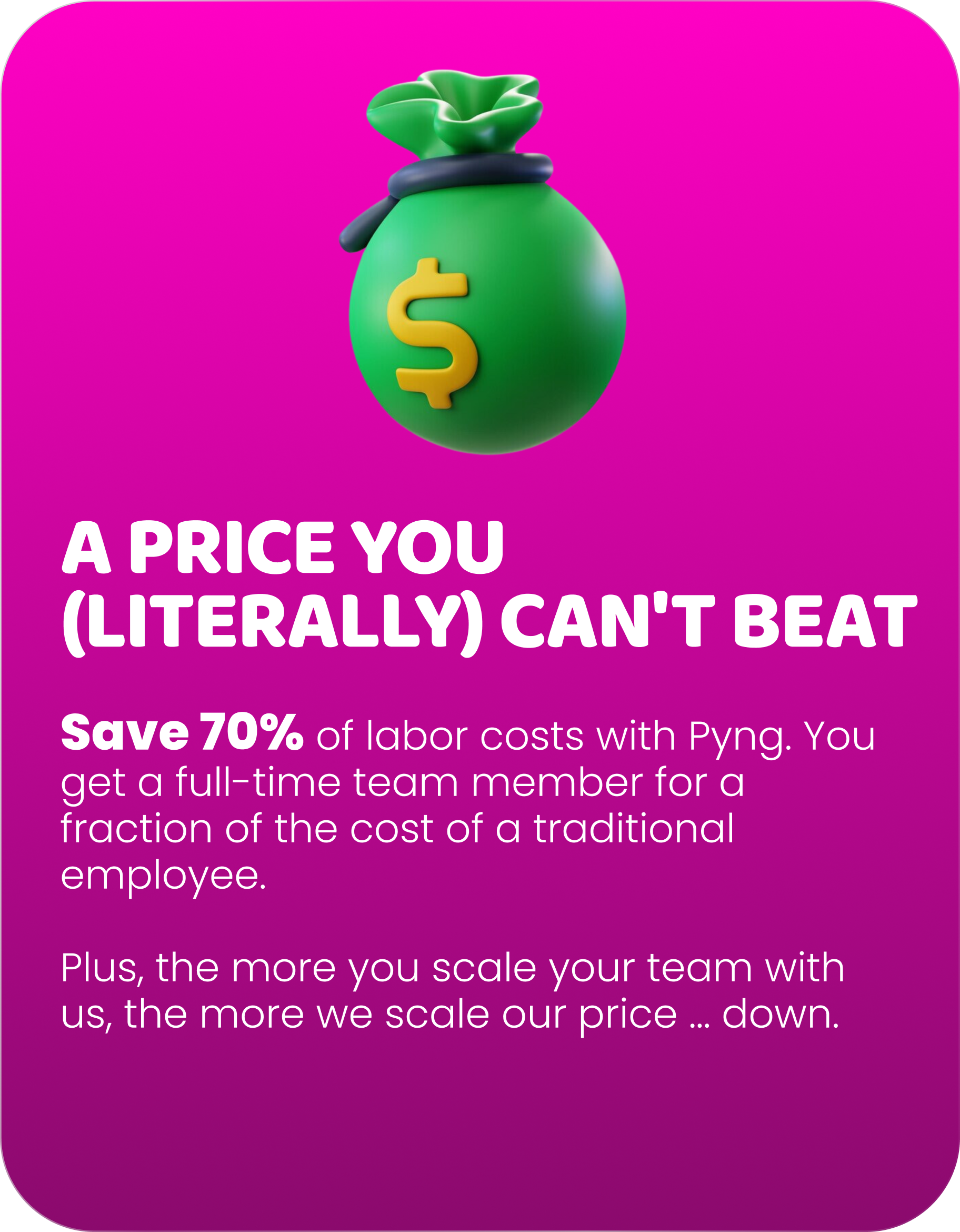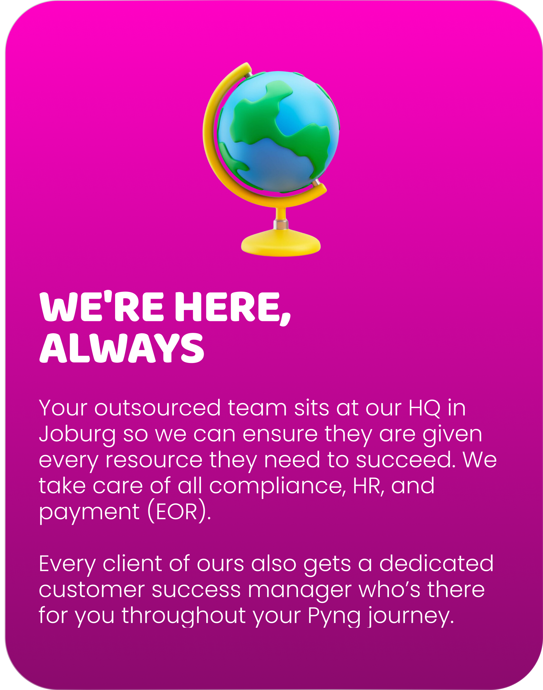 Pyng only recruits CX talent based on our extensive happiness philosophy. That means, every single candidate is trained to give your customers the absolute best & happiest customer service.
